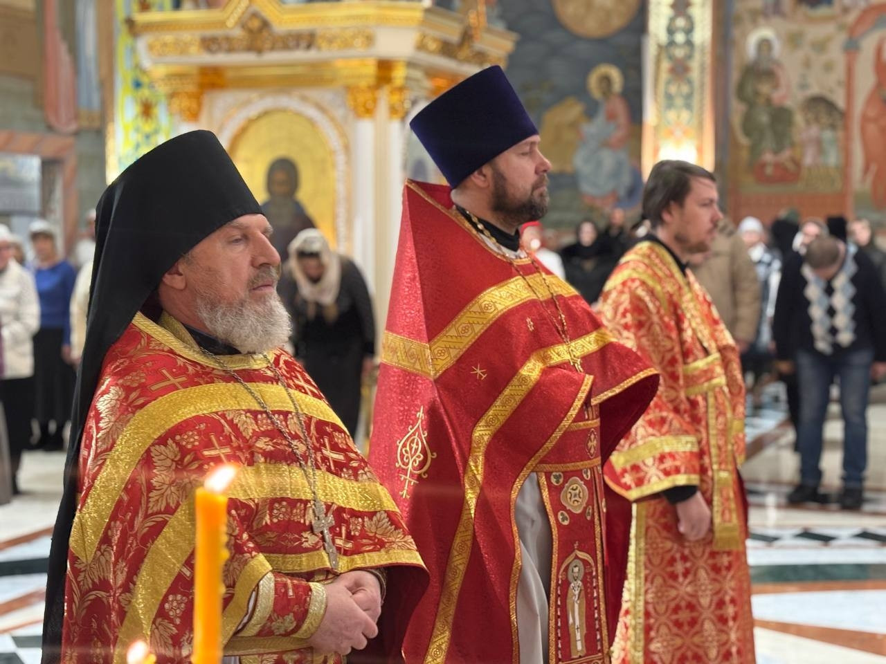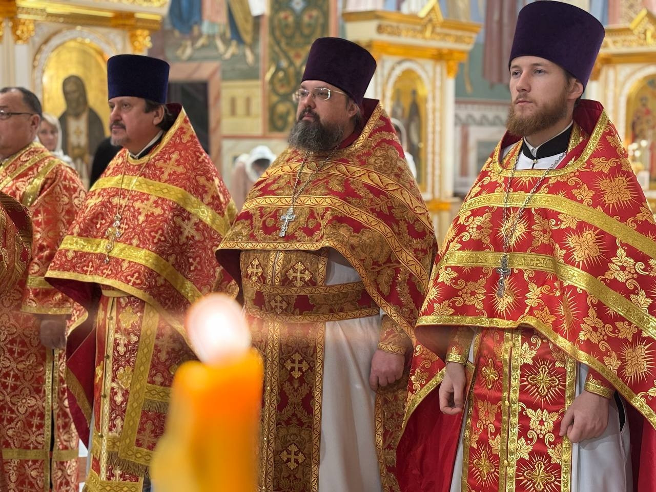 За Литургией правящему архиерею сослужили секретарь Троицкой епархии иерей Игорь Фокин, благочинный Пластовского округа протоиерей Михаил Сапронов, настоятель храма иконы Божией Матери "Скоропослушница" протоиерей Димитрий Кадомцев, настоятель храма св. вмч. Варвары г. Пласта иерей Виталий Махров, клирик Александро-Невского храма г. Троицка иеромонах Александр (Баранов), клирик Свято-Троицкого кафедрального собора г. Троицка иерей Кирилл Кривоногов.